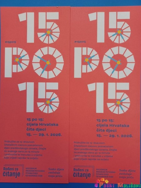 Naš vrtić već dugi niz godina njeguje aktivnosti koje potiču ljubav prema knjizi i čitanju i zato se jako veselimo ovom izazovu u koji se uključila cijela Hrvatska. Aktivnosti čitanja imaju velike dobrobiti za razvoj djece stoga pozivamo svih da nam se pridruže, 15 minuta dnevno, 15 dana za redom čitajmo djeci.